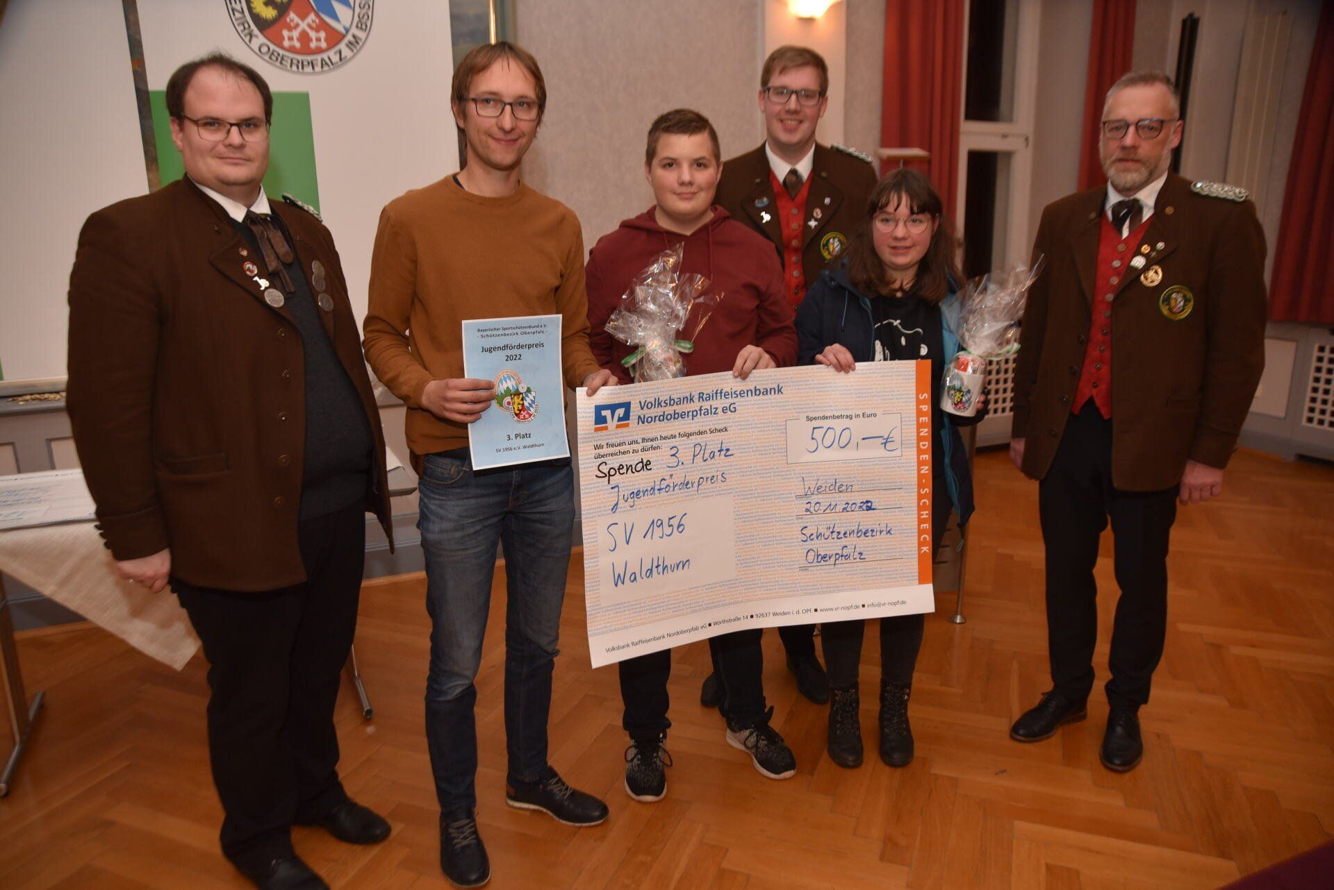 Der Protektor des Bayerischen Sportschützenbundes, S. K. H. Herzog Franz von Bayern, hatte zu einer Feierstunde auf Schloss Nymphenburg geladen, um das von ihm gestiftete Protektorabzeichen in Gold an dreizehn hochverdiente Schützenpersönlichkeiten zu verleihen. Dabei würdigte S. K. H. das ehrenamtliche Engagement der Geehrten. 1. Landesschützenmeister Christian Kühn dankte S. K. H. Herzog Franz von Bayern für seine ideelle, tatkräftige Unterstützung des Bayerischen Sportschützenbundes und für die Stiftung des Protektorzeichens in Gold.                              Für den Schützenbezirk Oberpfalz war der Bezirksschatzmeister, Stefan Brandmiller aus dem Sportschützengrenzgau Vohenstrauß unter den Geehrten.                                          Während der Protektor die Ehrenzeichen überreichte, hob der 1. Landesschützenmeister die Leistungen der Geehrten hervor.                                                                          Stefan Brandmiller ist seid 2000 Mitglied im Bayerischen Sportschützenbund. Seinem Heimatgau den Sportschützengrenzgau Vohenstrauß und den zahlreichen Vereinen Mitglied und ehrenamtlich wie sportlich fest verankert. Sein Heimatverein ist der Schützenverein "In Treue fest" Gebhardsreuth. Schon zu beginn seines Schützenlebens bringt er sich hier ehrenamtlich ein. So ist er Referent in gleich mehrere Fachbereiche. Beisitzer, Stv. Jugendleiter, 1. Sportleiter und seit 2010 bis heute 1. Schützenmeister. Nicht minderaktiv ist er im Sportschützengrenzgau Vohenstrauß. Vom Referenten für Leitungsabzeichen über das Amt des Rundenwettkampfleiters bis zum 1. Gausportleiter. Stefan Brandmiller ist allzeit eine verlässliche Stütze des Grenzgaues und dies auf den heutigen Tag. Den seit 2012 steht er den Gau als 1. Gauschützenmeister vor. Er bringt viele neue Ideen ein und setzt zahlreiche Impulse in Richtung Zukunft. Unter anderem auf seine Initiative hin eine neue Gaugeschäftsstelle gebaut. Seit 2016 ist er zudem von der Sportschützengemeinschaft Vohenstrauß 1. Schützenmeister. Auch im Schützenbezirk Oberpfalz ist Stefan Brandmiller aktiv. Seit 2016 ist er 1. Bezirksschatzmeister und von 2020 bis dieses Jahr zugleich Bezirksjugendschatzmeister. Er lenkt die Finanzströme vorausschauend und setzt die vorhandenen Gelder zukunftsgewandt  zur Förderung des Schützenwesens wie der Schießsportlichen Jugend ein. Schützenbezirk, Schützengau und Schützenverein haben mit Stefan Brandmiller einen nimmermüden Impulsgeber gekonnten Organisator alles im allen einen Motor an Ehrenamtsleitung.                                                                          Herzlichen Glückwunsch zu dieser hohen Auszeichnung.